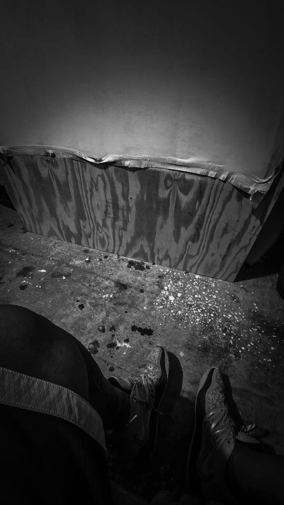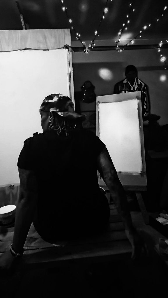 It’s easy to get lost in my lil homemade space with old holiday lights, a 1000 watt stereo system my dad gave me, my tufted rugs, random things I won’t part with, and paint everywhere.